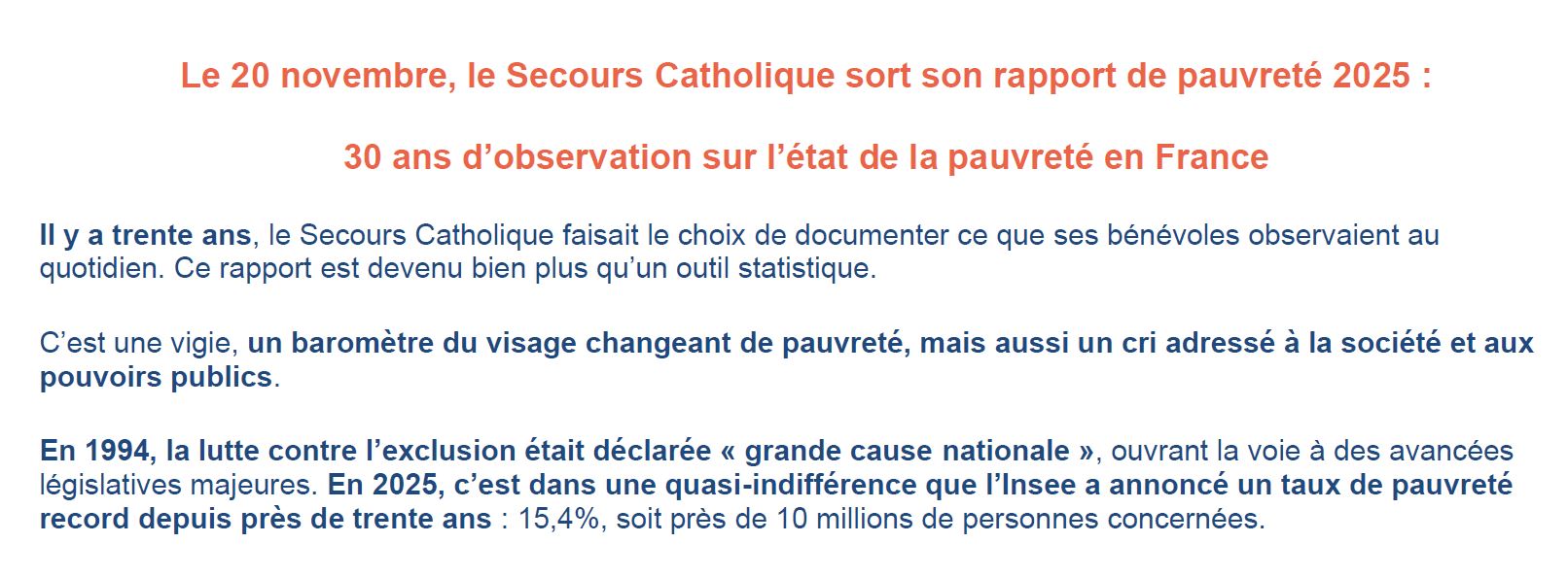 Depuis près de 30 ans, le Secours Catholique publie chaque année son Rapport sur l’État de la Pauvreté en France. En 2024, le Secours Catholique alerte sur la dégradation du niveau de vie des plus pauvres et la difficulté à accéder à la protection...