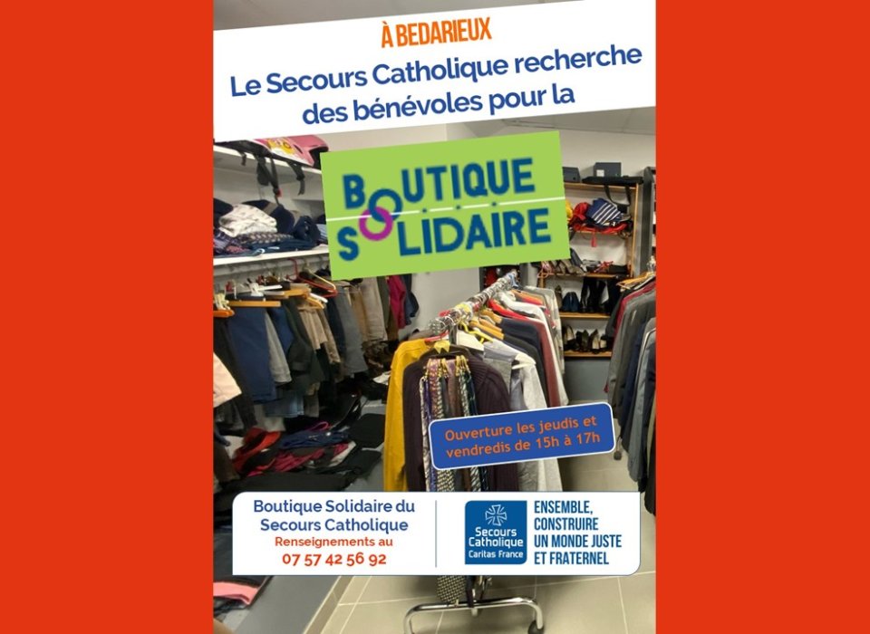 Le Secours Catholique de Bédarieux recherche des bénévoles pour sa boutique solidaire.
