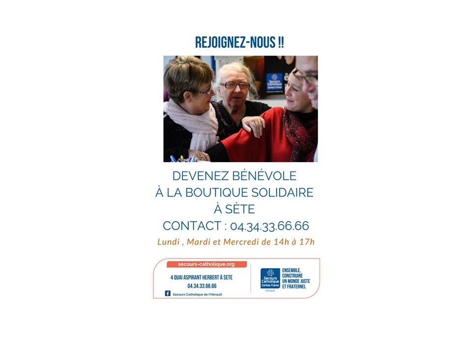 rejoignez l'équipe de la boutique solidaire de Sète :