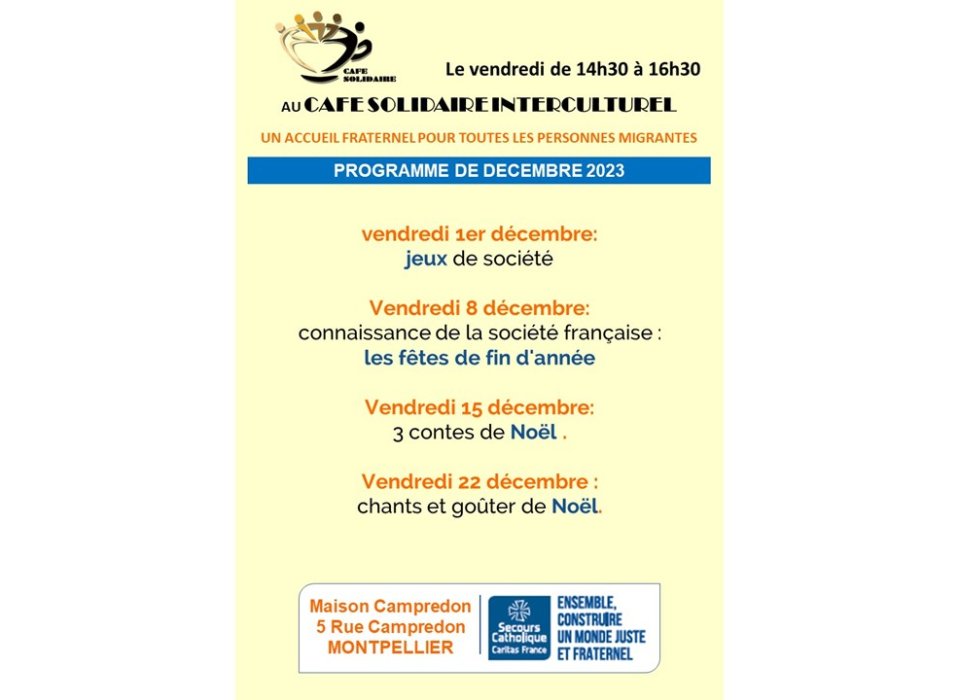 Café solidaire inter-culturel à Montpellier - décembre 2023