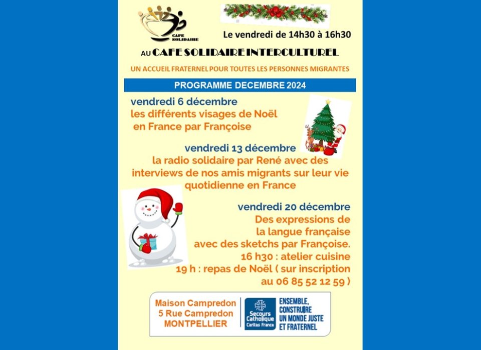 Café solidaire inter-culturel à Montpellier - décembre 2024