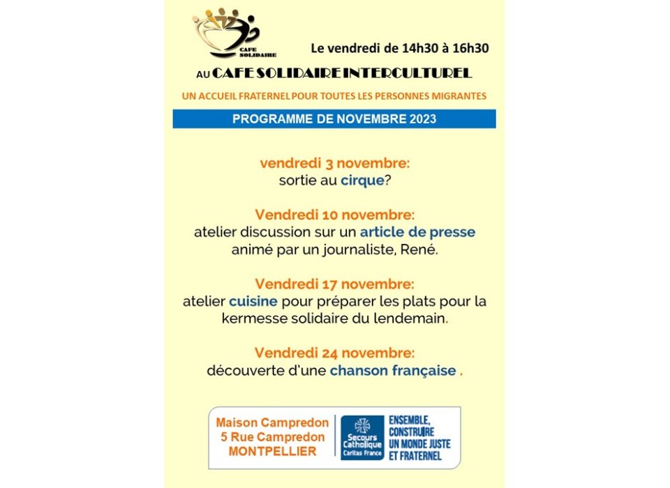 Café solidaire inter-culturel à Montpellier - novembre 2023