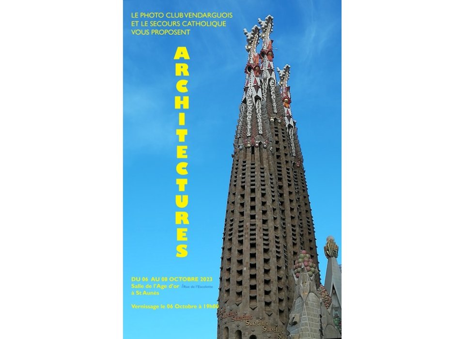 Les membres du Club Photo et l'équipe locale du Secours Catholique de Saint-Aunès seront heureux de vous accueillir les 6, 7 et 8 octobre 2023, à l'exposition "ARCHITECTURE" et aussi "PAS A PAS MAIS PAS SANS “TOIT” " sur les questions liées au logement.