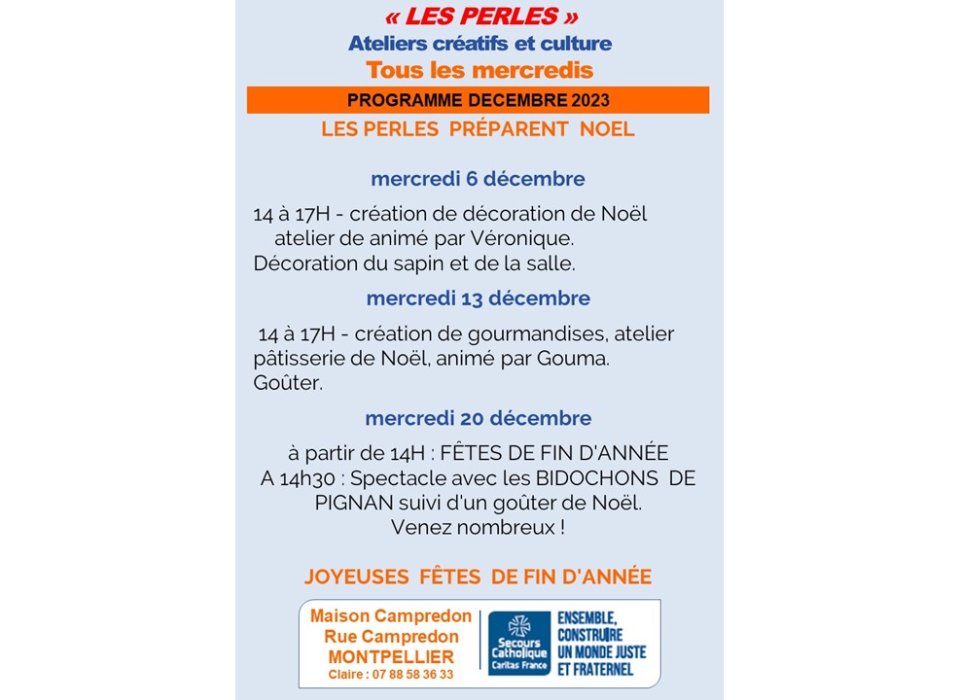 "LES PERLES" Ateliers créatifs et Culture à la Maison CAMPREDON à Montpellier, tous les mercredis.