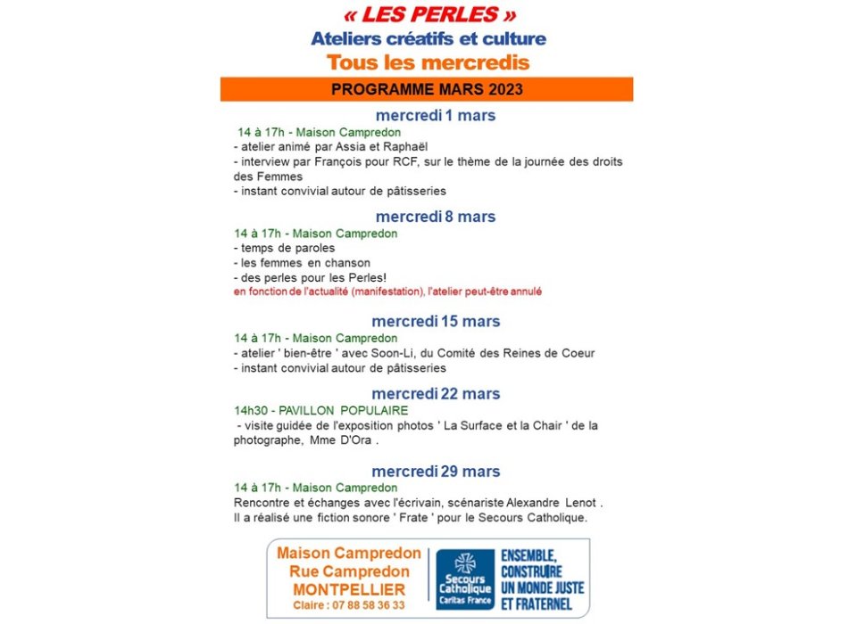 "LES PERLES" Ateliers créatifs et Culture à la Maison CAMPREDON à Montpellier.
