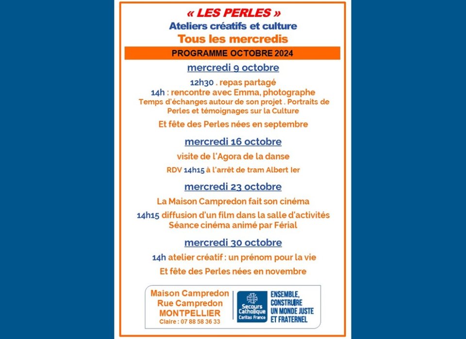 "LES PERLES" Ateliers créatifs et Culture à la Maison CAMPREDON à Montpellier, les mercredis.