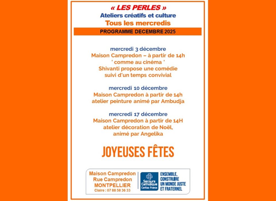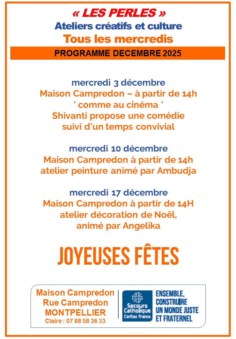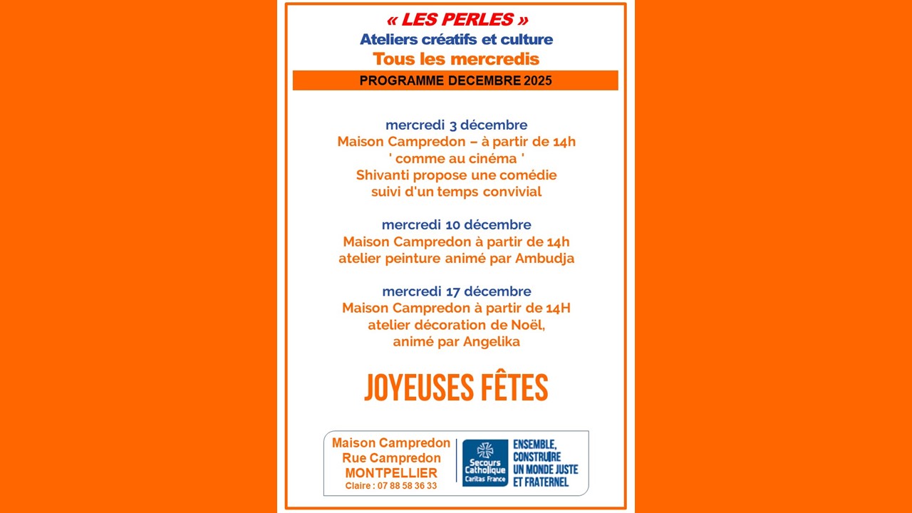 "LES PERLES" Ateliers créatifs et Culture à la Maison CAMPREDON à Montpellier, les mercredis.