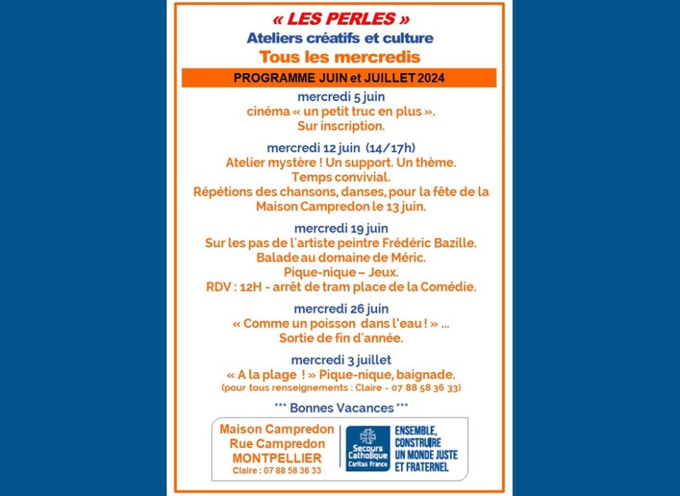 "LES PERLES" Ateliers créatifs et Culture à la Maison CAMPREDON à Montpellier, tous les mercredis.