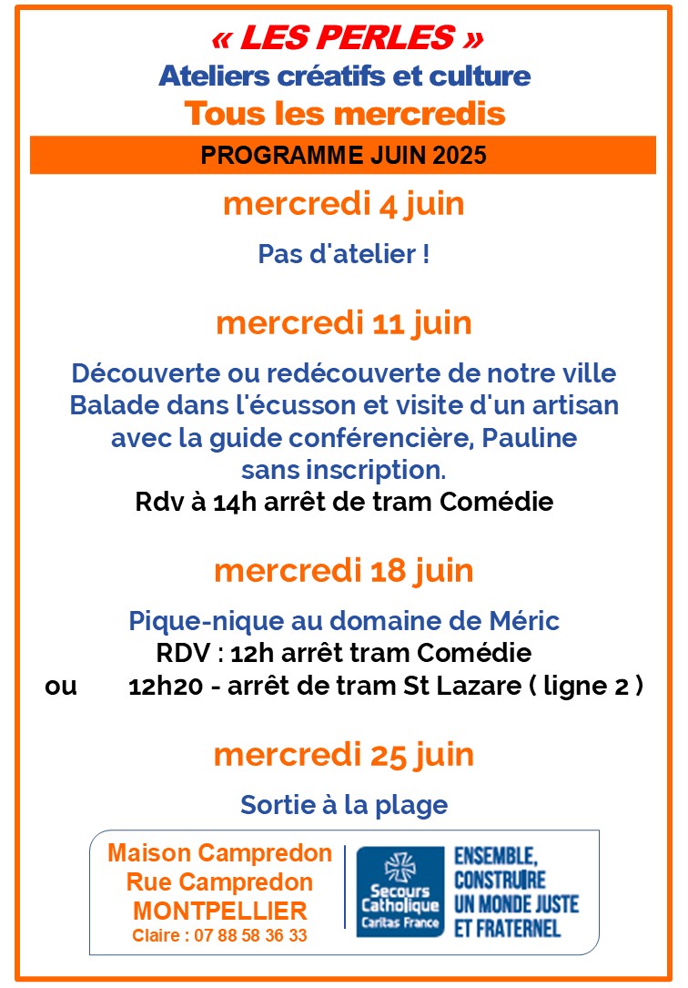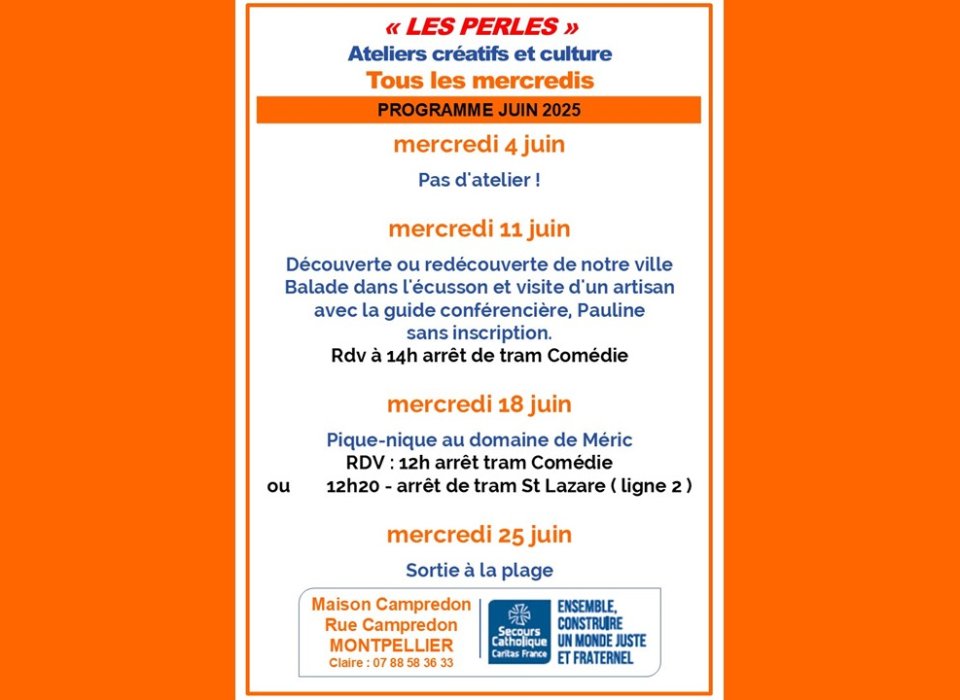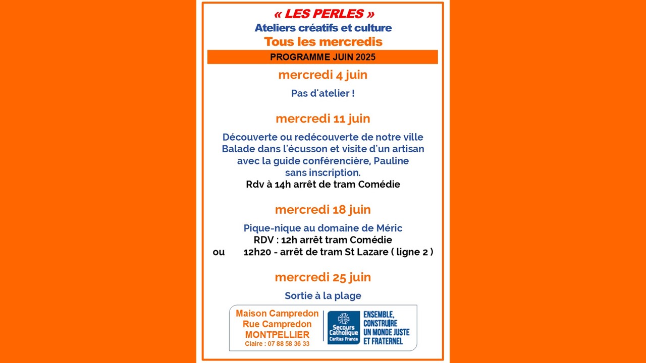 "LES PERLES" Ateliers créatifs et Culture à la Maison CAMPREDON à Montpellier, les mercredis.