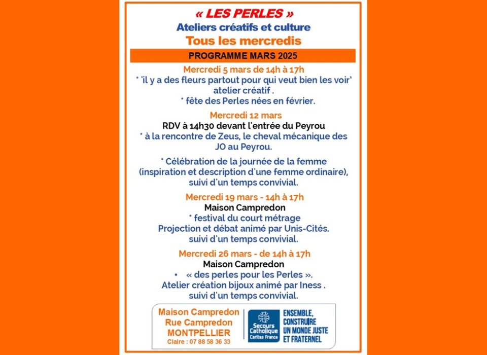 "LES PERLES" Ateliers créatifs et Culture à la Maison CAMPREDON à Montpellier, les mercredis.
