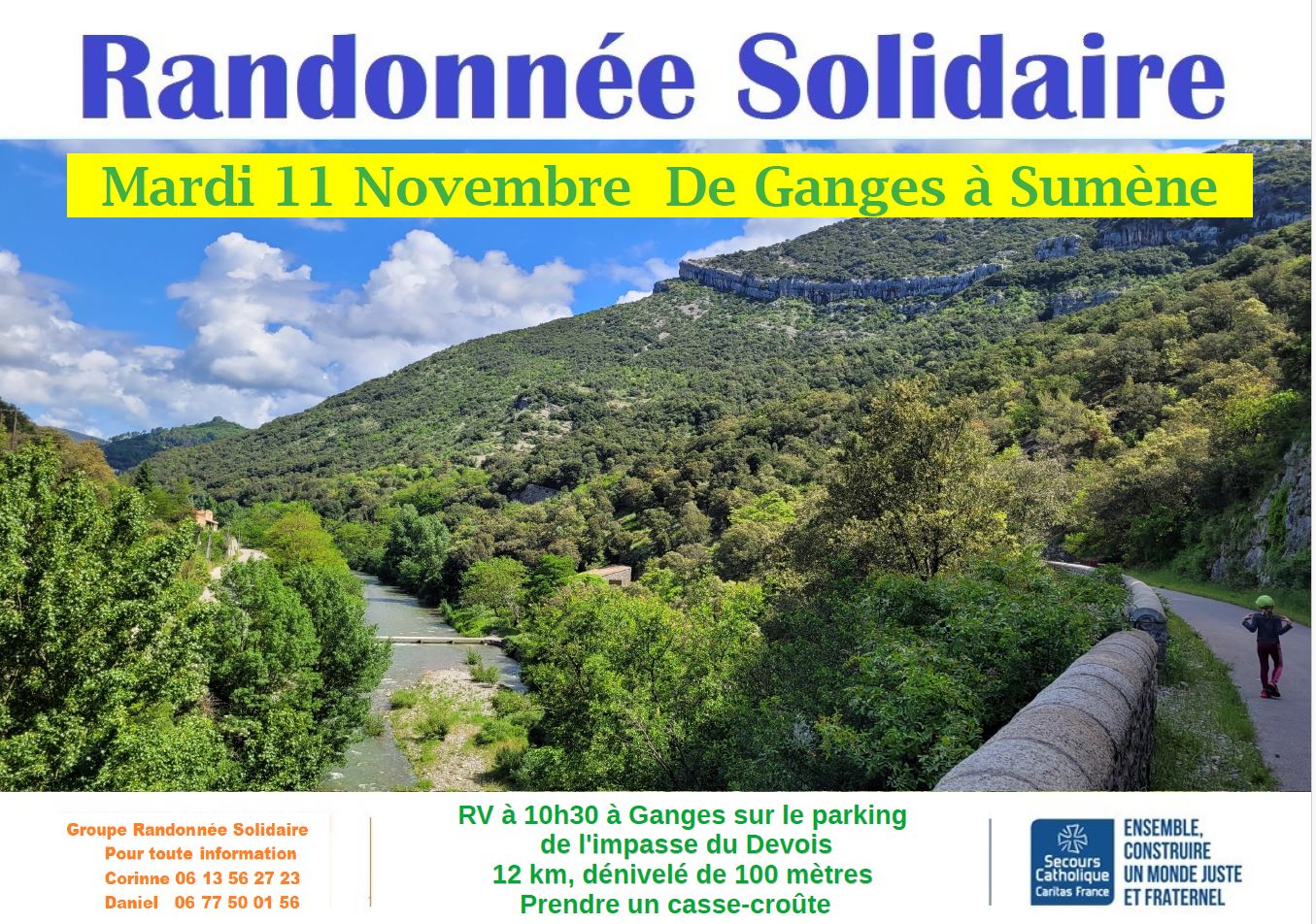 Randonnée Solidaire, mardi 11 novembre 2025 de Ganges à Sumène