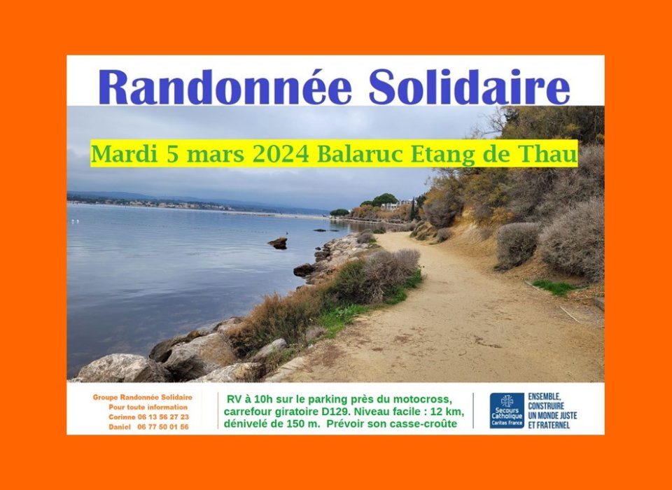 Randonnée Solidaire, mardi 5 mars 2024 Etang de Thau