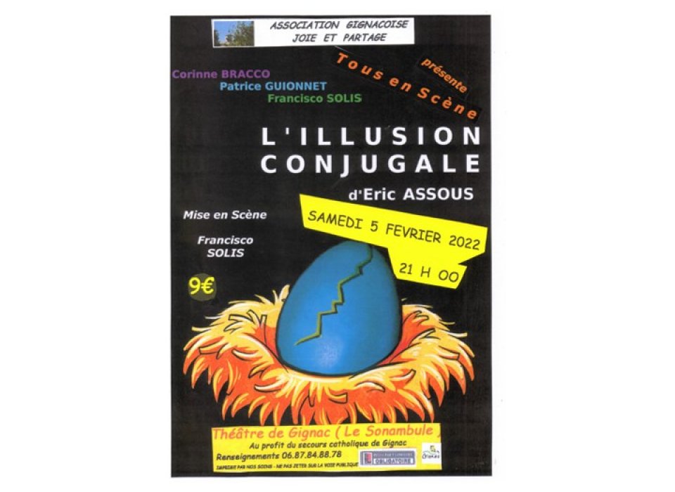 L'association Gignaçoise Joie et partage présente la pièce de théâtre « L'illusion conjugale », au profit du Secours Catholique de Gignac.