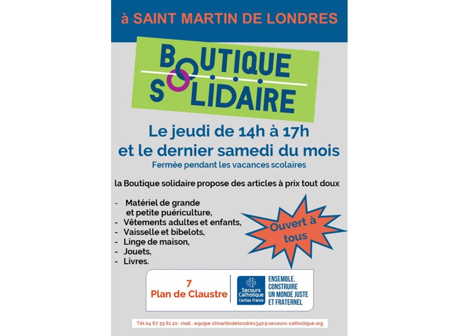 Ouverture de la BOUTIQUE SOLIDAIRE de St Martin de Londres TOUS les JEUDIS et le DERNIER SAMEDI du mois.